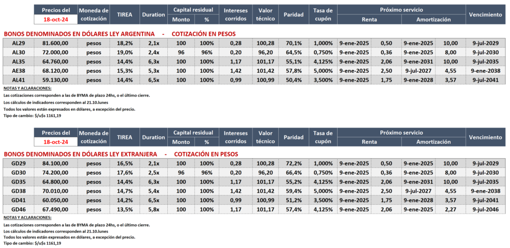 Reporte Semanal de Bonos del 18.10.2024