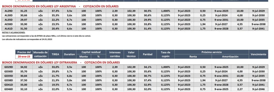 Reporte Semanal de Bonos del 20.01.2023