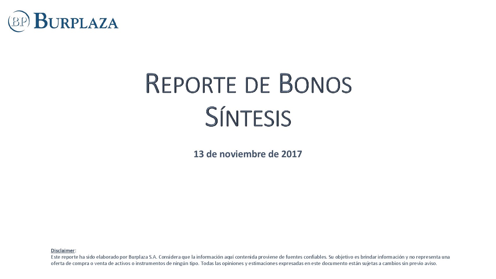 Reporte Semanal de Bonos al 13.11.2017