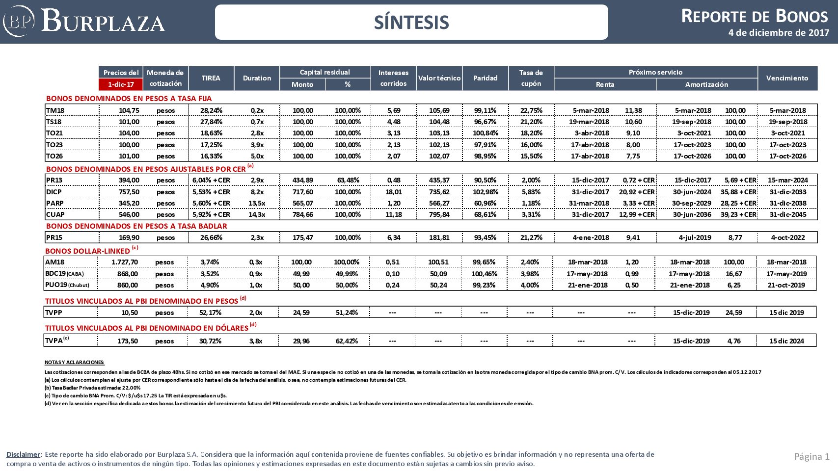 Reporte Semanal de Bonos del 04.12.2017