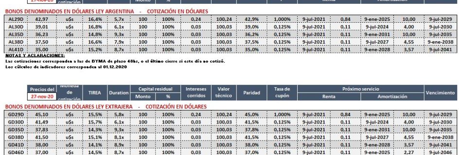 Reporte Semanal de Bonos del 27.11.2020