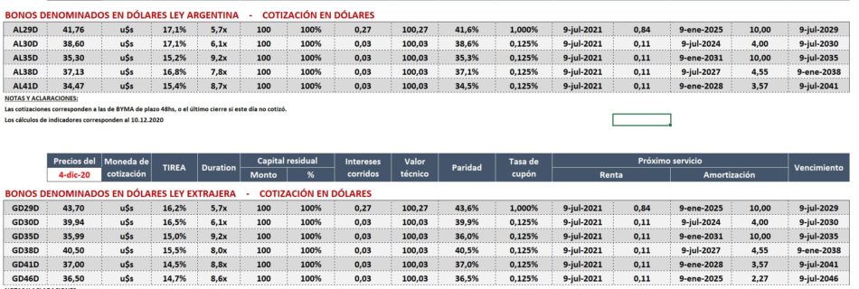 Reporte Semanal de Bonos del 04.12.2020