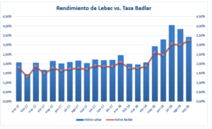 INDICE LEBAC La rentabilidad del INDICE LEBAC en el periodo comprendido entre el 31.08.2018 y el 28.09.2018 fue del 3.42%, equivalente al 44.58% TNA. En los primeros 9 meses del año el INDICE LEBAC acumula un rendimiento directo del 29.29%, equivalente al 39.16% El INDICE LEBAC es un índice diseñado […]