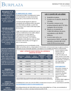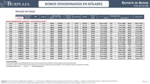 Informe de Bonos del 10.07.2018 VER REPORTE DE BONOS COMPLETO TÍTULOS PÚBLICOS EMITIDOS EN DÓLARES. En el segmento de títulos públicos emitidos en dólares los rendimientos fluctúan entre 2.40% y 9.31% nominal anual (considerando sólo los que operaron en los últimos jornadas) según sea el vencimiento del instrumento y si […]